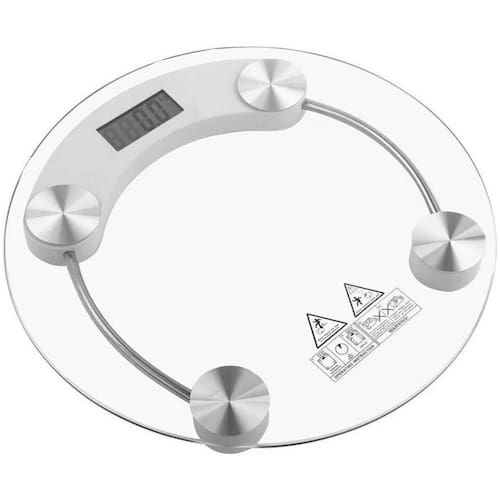 Especificações Técnicas: - Capacidade: 180kg - Peso inicial: 2kg / 15.4lb - Graduação: 0.1kg / 0.2lb - Visor: LCD de 4 dígitos - Unidade: kg / lb / st - Desligamento Automático: 8 segundos - Indicador de bateria fraca: LO - Exibição de erro: "Err" - Tela com excesso de peso: "O-Ld" - Zerador: Automático - Bateria: CR2032 inclusa - Vidro: Temperado - Design: Redondo - Cor: Transparente