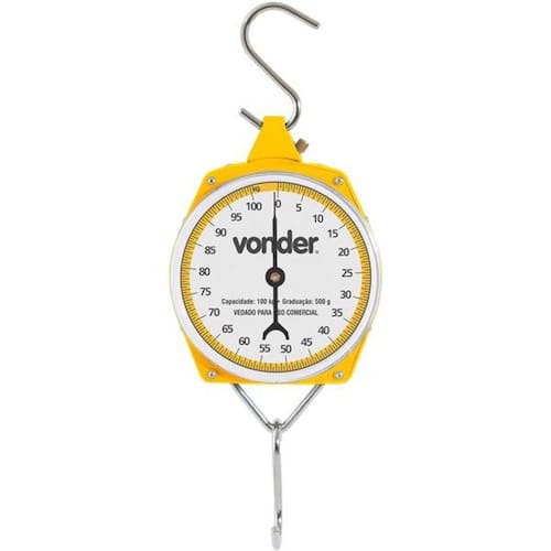 Balança suspensa tipo relógio Vonder, indicado para pesagens em geral em chácaras, fazendas e sítios. Ideal para pesagens de ração, aves, suínos, ovinos, caprinos e produtos rurais.Balança confeccionada em plástico resistente e metal. Acompanha gancho para prender o material a ou alimento a ser pesado. Recomendado apenas para o uso rural, vetada para o uso comercial.