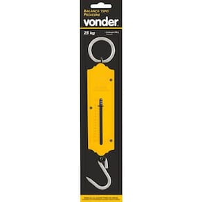 Balança Tipo Peixeiro 25kg Vonder Conteúdo da embalagem 1 Balança Aplicações e dicas de uso Indicada para pesagem de legumes, frutas, carnes, aves, peixes e mantimentos em geral. Observação: vetado o uso comercial, produto não calibrado, podendo ser utilizado apenas para uso doméstico. Destaques e diferenciais Confeccionada em aço carbono e alumínio, proporcionando maior resistência. Acompanha gancho para prender o material ou alimento a ser pesado. DETALHES TÉCNICOS