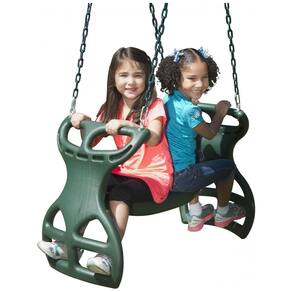 Balanço duplo Swing-N-Slide WS 3452 projetado para playgrounds residenciais e áreas externas, com configuração back-to-back para uso simultâneo por até 2 crianças. A estrutura em plástico com assentos individuais e correntes revestidas em plastisol atende a aplicações recreativas que incentivam interação entre usuários, fixando-se a suportes de balanço padrão (não incluído).