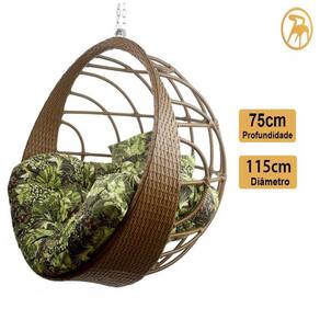 ESPECIFICACOES TECNICAS: Balanco Suspenso Hungria: - Altura: 117 cm - Largura: 117 cm - Profundidade: 78 cm - Suporta ate 200 kg - Acompanha 1 Almofada de assento, 1 almofada de encosto e 2 almofadas soltas - Acompanha 1 corrente e 2 mosquetoes