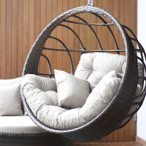 ESPECIFICACOES TECNICAS: Balanco Suspenso Hungria: - Diametro: 115 cm - Profundidade: 75cm - Suporta ate 200 kg - Acompanha 1 Almofada de assento, 1 almofada de encosto e 2 almofadas soltas - Acompanha 1 corrente e 2 mosquetoes