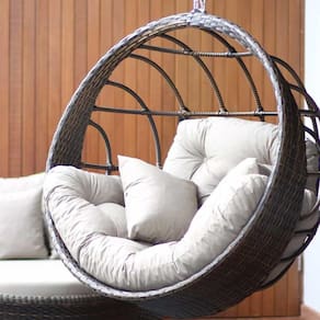 Balanço Fibra Sintética Hungria Para área, Varanda Trama Tabaco Nossos produtos sao de altissima qualidade e com design moderno, garantindo assim conforto e praticidade para seu bem-estar. Produzidos em estrutura de aluminio pintado e revestida em fibra sintetica, em alguns pontos. Possuem protecao UV, aumentando sua durabilidade contra acoes do tempo. Ideais para decorar ambientes classicos e modernos como: Cozinha, Sala, Quarto, Varanda, Edicula, Piscina, Jardim, Area de lazer, Festa, Reuniao, Churrasco. Balanco Hungria: Diametro: 110 cm Profundidade : 80 cm