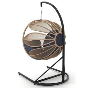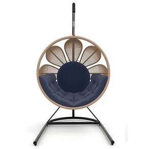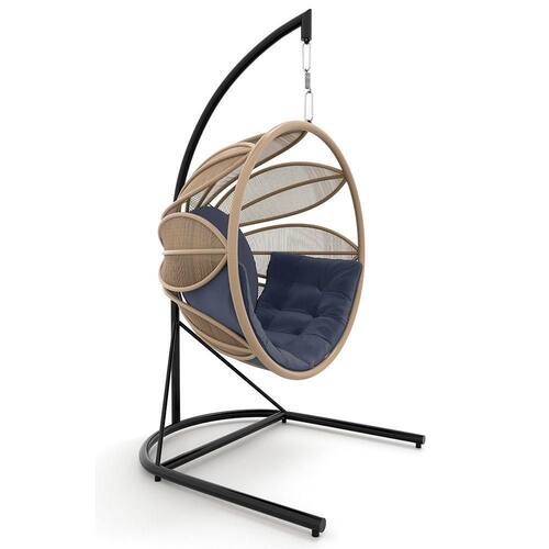 O revestimento do balanço é trançado em corda náutica com tratamento UV e o suporte possui estrutura de aço.