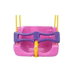 Os acessórios inclusos são: cinta com fecho da trava frontal para garantir a segurança da criança; estacas para fixação das bases, cordas e ganchos em formato S para a instalação do balanço na parte superior da estrutura.