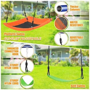Conjunto de balanço para área externa com estrutura em aço liga reforçada, acabamento em pintura eletrostática para maior resistência à corrosão. Este modelo 6 em 1 oferece três balanços ajustáveis em altura: balanço plataforma com alça de segurança, balanço de cinto em EVA resistente à água e balanço tipo "tree swing". Completa a estrutura um escada de escalada reforçada, rede de escalada em fibra composta e cesta de basquete para atividades extras. A estrutura com design em treliça formato A-frame possui dupla reforço nos pontos de maior tensão, evitando deformações mesmo com uso intenso. Medidas gerais aproximadas de 320 cm (profundidade) x 190 cm (largura) x 185 cm (altura), garantindo espaço adequado entre os balanços para segurança das crianças. Capacidade máxima suportada até 250 kg (550 libras), compatível com até três usuários simultâneos. Inclui seis estacas para fixação no solo otimizando a estabilidade. Produto recomendado para montagem em jardins, quintais, áreas ao ar livre como parques e varandas. Exige montagem.