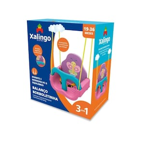 O balanço 3 em 1 injetado, tem opção de uso com ou sem encosto e barra de proteção pois acompanha o crescimento da criança. Possui cordas em plástico, cinto de três pontas e 2 ganchos para fixação. Indicado para crianças de 19 a 36 meses.