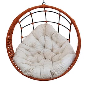 Balanço Ninho Suspenso Almofada Impermeável Branco Corda Náutica Ocre + Mola E Mosquetão