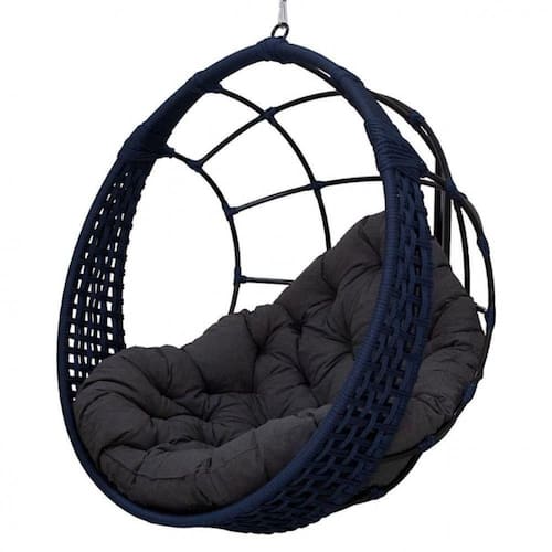 Balanço Ninho Suspenso Em Corda Náutica Almofada Impermeável Azul/cinza