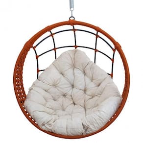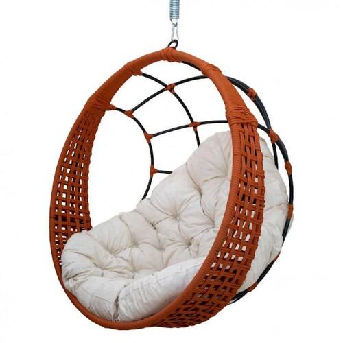 Balanço Ninho Suspenso Em Corda Náutica Almofada Impermeável Ocre/branco