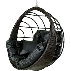 Balanço Ninho Suspenso Hungria Em Alumínio E Fibra Sintética - Teto, Jardim, área Preto E Courino Náutico Preto