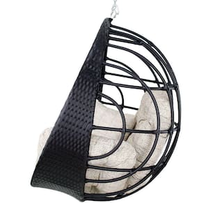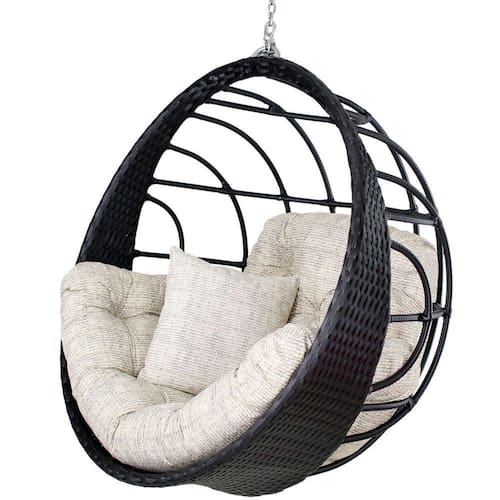 Balanço Ninho Suspenso Hungria Em Alumínio E Fibra Sintética - Teto, Jardim, área Preto E Fundo Palha