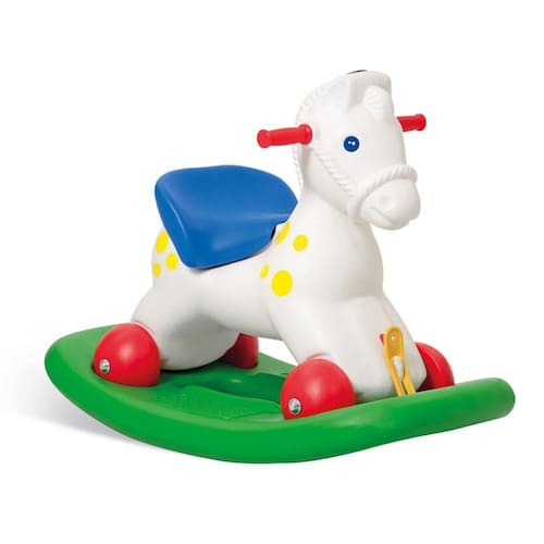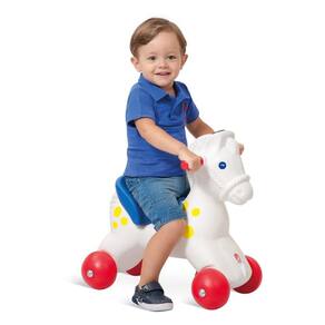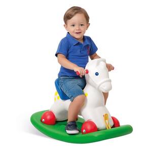 O clássico cavalinho, para balançar e treinar os primeiros passos. 2 formas de brincar: Balanço: Com a base, permite um balanço seguro e confortável. Passo a Passo: Removendo-se a base, a criança impulsiona o brinquedo com os pés, desenvolvendo seu equilíbrio e coordenação motora. Módulo sonoro com som de relincho e cavalgada Estrutura com dupla camada, maior durabilidade e resistência Idade sugerida: a partir de 1 ano e meio Peso máximo: 16 kg Altura máxima: 99 cm Ficha Técnica: Idade Indicada: De 1 ano e 6 meses até 3 anos Dimensões (C,L,A): 87 X 46 X 102 cm Dimensões da Caixa: 88 X 47 X 47 cm Cubagem: 0.1944 cm³ Peso da Embalagem: 1,200 kg