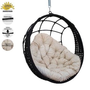 Balanço Suspenso Ninho Corda Náutica Preta Almofada Impermeável Branco + Mola E Mosquetão