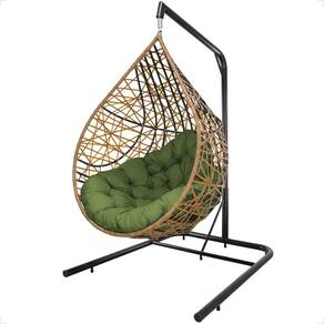 Balanço Suspenso Ninho Gota Com Suporte Mola E Mosquetão Almofada Impermeável Gourmet Área Externa