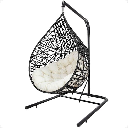 Balanço Suspenso Ninho Gota Com Suporte Mola E Mosquetão Almofada Impermeável Gourmet Área Externa