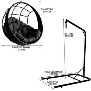 Balanço Suspenso Ninho Preto + Almofada Cinza