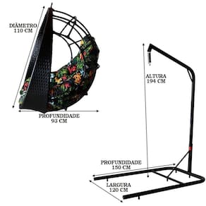 Balanço Suspenso Ninho com Suporte de sustentação móvel com almofada impermeável, mosquetão e mola