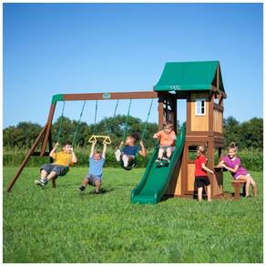 Nome da Marca: Backyard Discovery Fabricante: Backyard Discovery UPC: 752113001022 Tipo de Material: Cedro Material da Estrutura: Madeira Peso Máximo Recomendado: 40 kg Montagem Necessária: Sim Cor: Vermelho, Amarelo, Verde Tipo de Acabamento: Não Finalizado Dimensões do Item (C x L x A): 343 x 428 x 262 cm Peso do Item: 240 kg Número Máximo Compatível de Assentos: 2