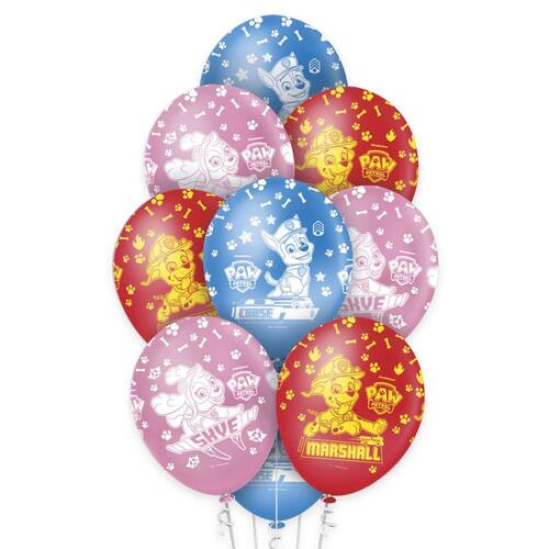 Conjunto com 10 balões temáticos da Patrulha Canina, trazendo os adoráveis personagens para a celebração.