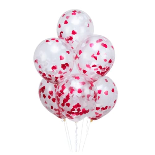 Contém: 01 un - balão látex com confete coração vermelho 12'' 30cm 6un