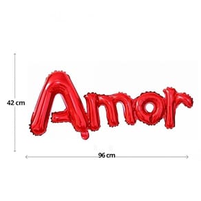 Descrição: Este kit de balões metalizados é uma declaração visual poderosa e festiva, formando a palavra ´AMOR´. É perfeito para adicionar um toque romântico e vibrante a qualquer celebração ou evento especial, criando um ponto focal impactante.
