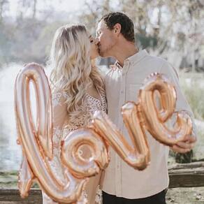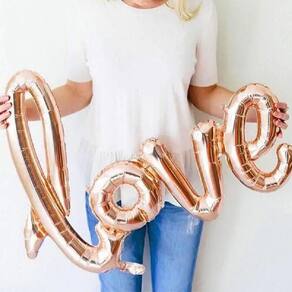 BALAO METALIZADO LOVE Balão metalizado escrito Love em letra cursiva Medidas aproximadas: 79cm de largura x 57,5cm de comprimento. Inflar com ar normal. Balão produzido com componentes de maior duração e brilho: