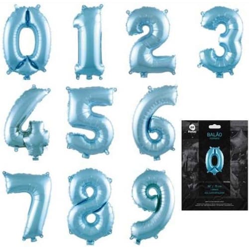 Balão metalizado NÚMEROS - AZUL CLARO - 40 cm
