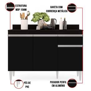 Cozinhar se tornará um hábito ainda mais prático e divertido com este lindo Balcão Vick 120 cm no tom Preto. É uma ótima opção para criar um espaço elegante e requintado. Essa cor Preto agregará um aspecto leve, charmoso e moderno à decoração. Uma dica bem legal para que a decoração da cozinha não caia no tédio e fique com um ar mais alegre, é optar por itens decorativos super coloridos, mantendo sempre a harmonia com o restante da mobília. Tudo varia de acordo com a personalidade e estilo do usuário(a). Esse balcão acompanha tampo, possui 3 portas e 1 gaveta de puxadores em perfil alumínio e ainda conta com 1 prateleira interna oferecendo maior organização. Além disso, pés em PVC e estrutura em MDP com acabamento em pintura BP. Escolha o seu Balcão Vick, e deixe sua cozinha um sucesso!