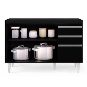 Imagine ter uma cozinha funcional, com espaço e móveis ideais para atender suas necessidades. Seria maravilhoso né!? E por que não realizar esse sonho de consumo? A D'Rossi, quer tornar sua rotina diária mais prática. Você concorda comigo que um dos lugares da casa que mais passamos horas é na cozinha, seja preparando os alimentos, ou fazendo aquela faxina não é!? Que tal economizar mais tempo investindo neste Balcão sem Tampo Beth, no tom Preto 120 cm? Uma peça funcional, durável e resistente à umidade, possibilita que você se organize melhor, tanto nos preparos dos alimentos, quanto na limpeza e organização. Produzido com materiais de ótima qualidade, sua estrutura é feita em MDP, pés em PVC, contém 3 portas com puxador em perfil metálico contendo amplo espaço interno e 2 gavetas com corrediça metálica, ideais para seus talheres, panos de pratos, dentre outros. Tenho certeza que você não vai querer ficar sem o seu! Garanta agora mesmo seu Balcão Beth.