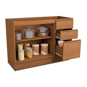 O Balcão 120 cm 2 Portas 3 Gavetas Kappesberg Ciela - R626 é ideal para deixar sua cozinha mais prática. O produto é feito em MDP no corpo e em MDF 18 mm na frente. Além disso, o item é revestido em pintura Touch na cor Canela com acabamento fosco, garantindo mais durabilidade ao balcão. Com 2 portas, 3 gavetas e 1 prateleira, o produto é perfeito para você armazenar os seus itens de cozinha. As dobradiças possuem sistema de amortecimento ao abrir e fechar a porta.