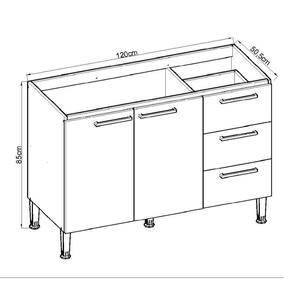 Dimensões do Produto Montado: Altura: 85 cm Largura: 120 cm Profundidade: 51 cm Obs.: - As imagens são meramente ilustrativas, os eletros e a decoração não acompanham o produto - A Genial não disponibiliza serviço de montagem - O produto segue com manual e todas as ferragens necessárias para a instalação - Não colocar o produto em lugar úmido, não arrastar, limpar somente com pano macio e seco, não expor o produto a incidência de luz solar, não colocar peso superior ao indicado - Garantia de 03 meses contra defeito de fabricação