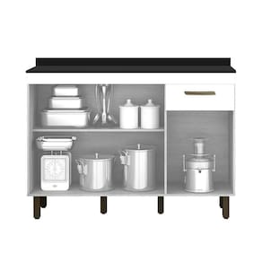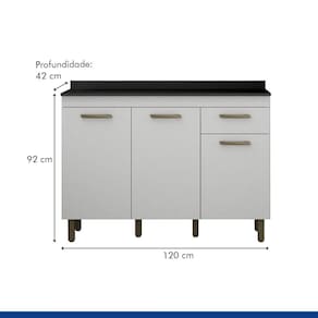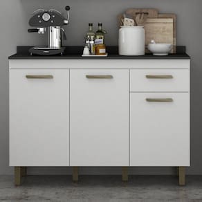 Para conquistar uma cozinha completa de verdade, o ideal é apostar em um móvel que acomode todos os seus utensílios e ainda facilite a rotina enquanto esbanja um visual de design e cor clássicos. Tudo isso é fácil de encontrar no Balcão São Luis, que traz espaço interno ideal para organizar louças, panelas, alimentos de mercearia e até eletrodomésticos, além de gaveta para armazenar os talheres e um tampo para auxiliar na preparação de pratos ou apoiar enfeites. Por fora, é a tonalidade sóbria, os puxadores e os pés elevados que chamam a atenção - todos esses detalhes juntos ajudam a criar uma atmosfera ainda mais especial e receptiva para aqueles momentos de refeições em família. Agora é só apostar no mobiliário certo para acompanhar essa peça e deixar o seu cômodo gourmet Suporta Granito: Não Acabamento da Prateleira: Pintura UV Escala de Brilho da Prateleira: Fosco Acabamento da Gaveta: Pintura UV Escala de Brilho da Gaveta: Fosco Material do Puxador da Gaveta: ABS Acabamento da Porta: Pintura UV Escala de Brilho da Porta: Fosco Material do Puxador da Porta: ABS Acabamento: Pintura UV Acabamento dos Pés: Pintura Acompanha Tampo: Sim Altura dos Pés: 13 Ambiente Principal: Cozinha Balcão Acompanha Pia: Não Complexidade da Montagem: Média: pode ser montado por mais de uma pessoa e/ou necessite de maior conhecimento para montagem Cor: Branco Cor do Produto: Branco Escala de Brilho: Fosco Gaveta com Chave: Não Itens Inclusos: 1 Balcão, Kit Ferragens e Manual de Montagem Manual de Montagem e Instalação: https://cdn2.madeiramadeira.com.br/atributo/valdemoveis/1235597-esquema-de-montagem-balcao-1200-sao-luis.pdf Material da Dobradiça/Corrediça da Porta: Metálica Material da Gaveta: MDP Material da Porta: MDP Material da Prateleira: MDP Material do Tampo: MDP Material dos Pés: Plástico Medida do Tampo (L x C x E): 120cmx42cmx12mm Necessita Montagem: Sim Origem do Produto: Nacional Pés Reguláveis: Sim Peso: 28.8 Peso Máximo por Gaveta: 5 Peso Máximo por Prateleira: 10 Possui Pés: 06 Possui Portas: 03 Possui recorte para Cooktop: Não Recomendações de Uso, Manutenção e Limpeza: Limpar com pano macio e levemente umedecido. Não utilizar solventes a base e de inflamáveis. Não utilizar produtos abrasivos. Sapatas Niveladoras: Sim Sistema de Montagem: Parafusos. Suporta Até (kg): 50 Tipo de Corrediça da Gaveta: Simples Tipo de Dobradiça/Corrediça da Porta: 35 mm Tipo de Porta: Bater Tipo de Puxador da Gaveta: Externo Tipo de Puxador da Porta: Externo