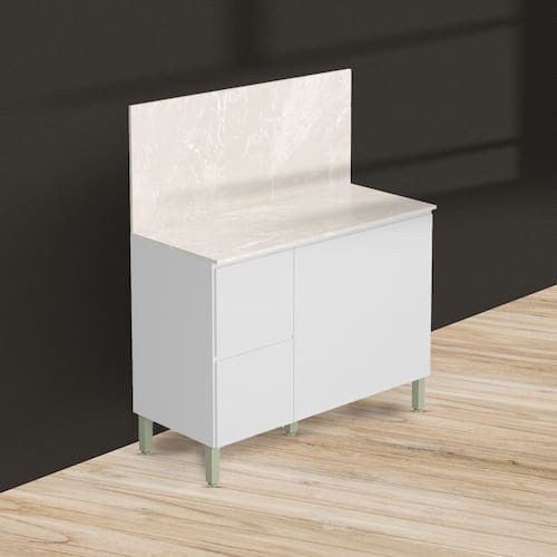 Especificações Técnicas: Marca: Kits Paraná - 3022 Modelo: ART Estrutura: MDP Quantidade de Portas: 03 Material dos Puxadores: Alumínio Material das Dobradiças: Metálicas Quantidade de Gavetas: 02 Tipo de Corrediças: Telescópicas Acompanha Tampo: Sim