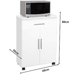 Ele possui uma gaveta com corrediça metálica e rodízios facilitando a locomoção e limpeza.