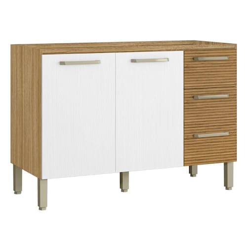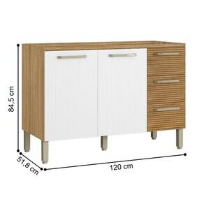 O Balcão possui 2 portas e 3 gaveta, destaca-se por sua praticidade e eficiência de uso, podendo ser utilizada como complemento de cozinha.