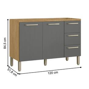 O Balcão possui 2 portas e 3 gaveta, destaca-se por sua praticidade e eficiência de uso, podendo ser utilizada como complemento de cozinha.