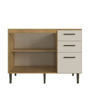 O Balc?o 2 Portas 3 Gavetas 120cm com P?s 100 MDF May Cadorin M?veis, feito 100 em MDF de 15mm. Conta com corredi?as telesc?picas, dobradi?as com amortecedores caneco 35mm, p?s regul?veis e puxadores tipo al?a em alum?nio. Ideal para quem busca qualidade.