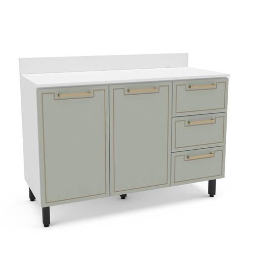 O Balcão Amara da Politorno Móveis, com tampo, 2 portas e 3 gavetas, une funcionalidade e estilo contemporâneo. O tampo reforçado amplia a superfície de trabalho para o preparo de receitas, enquanto a estrutura em MDP/MDF assegura robustez e longa vida útil. A pintura FF/UV oferece proteção contra umidade e facilita a limpeza diária. As gavetas, apoiadas em corrediças telescópicas, deslizam suavemente e garantem acesso rápido aos utensílios. Detalhes usinados acrescentam toque de elegância, e o amplo espaço interno valoriza qualquer cozinha, mantendo tudo organizado.