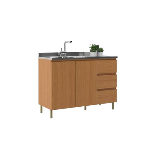 Características: Estrutura MDF 2 Portas 3 Gavetas Corrediças telescópicos Pés com regulagem de altura Acabamento em pintura UV Obs.: não acompanha pia nem tampo Prateleira