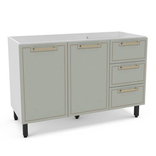 O Balcão de Cozinha Amara, da Politorno, sem tampo, reúne 2 portas e 3 gavetas para organizar utensílios e mantimentos com eficiência. Fabricado em MDP/MDF, combina robustez e acabamento sofisticado, enquanto a pintura FF/UV protege contra umidade e simplifica a limpeza diária. As gavetas, montadas em corrediças telescópicas, deslizam suavemente e abrem por completo, oferecendo acesso total ao conteúdo. Puxadores de alumínio acrescentam um toque de elegância e resistência, e o detalhe usinado nas frentes reforça o visual moderno, o móvel oferece amplo espaço interno sem comprometer a circulação, tornando-se estilosa para qualquer cozinha.