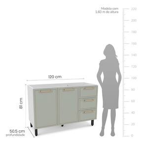 Características: Estrutura MDP/MDF 2 Portas 3 Gavetas 1 Prateleira Corrediças telescópicas Acabamento FF Pintura UV Gavetas suporta até 3kg Prateleira suporta ate 5kg distribuídos. Não acompanha tampo ou pia