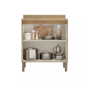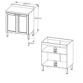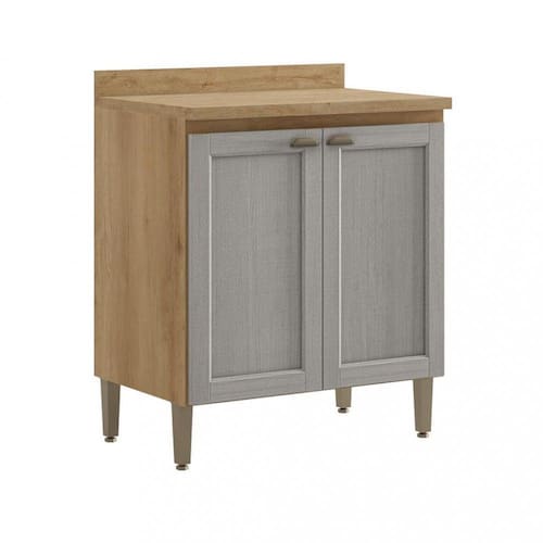 Características: 2 Portas com moldura, Dobradiças metálicas 35mm com sistema de amortecimento, 1 Prateleira removível de 15mm, 2 Puxadores concha 4 Pés reguláveis, sistema de montagem com parafusos e cavilhas, Tampo com espessura de 30mm.