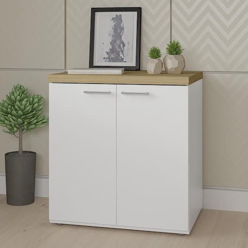 Feito com suas laterais, prateleiras, fundo e portas em MDP e seu tampo em Tamburato 37mm com fita de borda PVC. Contém seu fundo branco, podendo ser como divisórias, uma prateleira fixa e sapatas plásticas.