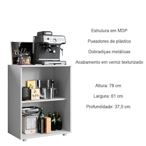 O balcão possui 2 portas de bater e uma prateleira interna, foi feito com os melhores materiais do mercado e é perfeito para sua cozinha ou escritório!