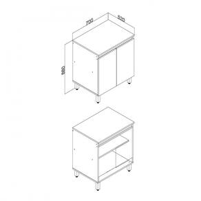 Características: Estrutura MDP 18 mm Dobradiças 35mm com amortecimento 2 Portas Painéis de 18 mm de espessura Fechamento suave e silencioso das portas