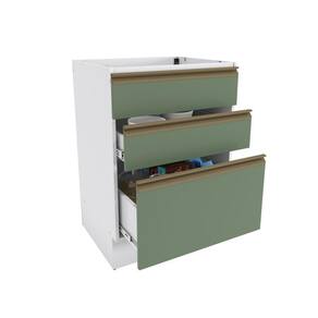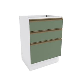 Acabamento: Pintura Brilho / Pintura Fosco | Cor: Branco/Verde Oliva | Corrediças: Telescópicas | E possivel montar o produto sem os pés?: Sim | Garantia: 3 meses para de fabricação | Gavetas: Externas | Matéria-prima: MDF | Peso suportado por gaveta: 6 kg | Puxadores: Puxadores de Metal e de Alumínio | Quantidade de gavetas: 3 | Sistema de montagem: Parafuso Philips | Duração da garantia: 3 meses | Requer montagem: Sim | Tipo de móveis de cozinha: Balcão | Materiais do corpo: MDF | Tipo de garantia: Garantia do fabricante