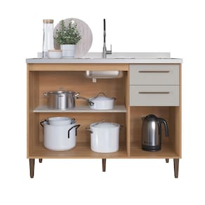Características: 2 Gavetas 3 Portas 1 Prateleira interna Corrediça telescópica Dobradiças com amortecimento Estrutura em MDP 15 mm Pés com regulagens Puxadores em alumínio Não acompanha tampo