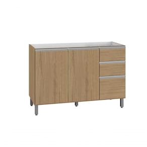 Balcão 3 Portas 2 Gavetas Factual Carvalho - Fdecor Produto: Balcão 3 Portas 2 Gavetas Sem Tampo Para Cuba Factual - FdECOR O Balcão 3 portas 2 gavetas sem tampo para cuba Factual da FdECOR Móveis é o produto ideal para quem procura praticidade e beleza, pode ser sozinho ou como complemento da cozinha modelo Factual, um produto versátil, possui amplo espaço interno bem distribuído em 03 portas de bater, 02 gavetas com corrediças telescópicas que permitem abertura tota, puxadores perfil em alumínio dando um charme todo especial ao produto, dobradiças de aço, ideal para pia 120cm (não acompanha tampo/cuba, vendidos separadamente), estrutura em MDP, pintura UV, pés reguláveis de acordo com o piso que conferem firmeza e resistência ao móvel. Disponível em padrões que combinam com os mais variados ambientes. Qualidade que só a FdECOR oferece em seus produtos. Diferenciais do Produto: Corrediças telescópicas, puxadores perfil em alumínio, ideal para cuba/pia 1,20m (não acompanha tampo), pés reguláveis. Linha: Factual Ambiente: Cozinha Material: MDP 15mm Acabamento: Pintura UV Quantidade, Tipo e Material da Corrediça: 2 pares; telescópica; aço. Quantidade e Material da Corrediça: 6; aço. Quantidade de Gaveta: 2 Quantidade e Tipo de Porta: 03; de bater Quantidade de Prateleira: 1; fixa. Quantidade e Tipo dos Pés: 5; regulável; plástico Quantidade e Material do Puxador: 5; perfil alumínio Sistema de Montagem: Parafs, pregos, cavilhas. Nível de Montagem: baixo Recomendações: Para limpeza utilize pano levemente umedecido com água e na sequência pano seco. Não usar produtos químicos ou abrasivos. Peso Suportado (aprox.): 14 kg Garantia: 3 Itens Incls: Balcão 3portas 2gavetas, manual e acessórios de montagem. Altura (cm): 850 Largura (cm): 1200 Profundidade (cm): 500 Peso produto montado (kg): 34,2