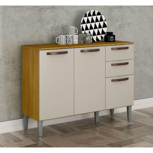 O Balcão Melissa 3 portas é ideal para organizar seu espaço com praticidade e rapidez. O balcão possui 3 portas com dobradiças metálicas, 1 prateleira, puxadores em abs bronze, pés reguláveis e 2 gavetas com corrediças telescópicas para ajudar na organização. O balcão possui um design elegante para complementar sua cozinha ou despensa. Não perca tempo garanta já o seu! Suporta Granito: Sim Acabamento da Prateleira: Pintura UV Escala de Brilho da Prateleira: Semi-Brilho Acabamento da Gaveta: Pintura UV Escala de Brilho da Gaveta: Semi-Brilho Material do Puxador da Gaveta: ABS Acabamento da Porta: Pintura UV Escala de Brilho da Porta: Brilhante Material do Puxador da Porta: ABS Acabamento: Pintura UV Acabamento dos Pés: Polipropileno Acompanha Tampo: Sim Altura dos Pés: 17,5 cm Ambiente Principal: Cozinha Balcão Acompanha Pia: Não Complexidade da Montagem: Alta: deve ser montado por um montador especializado Cor: Cinamomo/Off White Cor do Pés: Prata Cor do Produto: Cinamomo/Off White Cor Interna: Cinamomo Escala de Brilho: Brilhante Gaveta com Chave: Não Informações Complementares: distribuídos Itens Inclusos: 1 Balcão, kit de ferragem e manual de montagem Manual de Montagem e Instalação: https://cdn2.madeiramadeira.com.br/atributo/chf/1316556-esquema-de-montagem-balcao-maisa-chf.pdf Material da Dobradiça/Corrediça da Porta: Metálica Material da Gaveta: MDP Material da Porta: MDP Material da Prateleira: MDP Material do Tampo: MDP Material dos Pés: Polipropileno Medida do Tampo (L x C x E): 118cmx39cmx1,5cm Necessita Montagem: Sim Origem do Produto: Nacional Pés Reguláveis: Sim Peso: 30 kg Peso Máximo por Gaveta: 5 kg Peso Máximo por Prateleira: 30 kg Possui Pés: 05 Possui Portas: 03 Possui recorte para Cooktop: Não Recomendações de Uso, Manutenção e Limpeza: Limpeza com pano umedecido. Não aplicar lustra móveis. Sapatas Niveladoras: Sim Sistema de Montagem: parafusos e cavilhas Suporta Até (kg): 70 kg Tipo de Corrediça da Gaveta: Telescópica Tipo de Dobradiça/Corrediça da Porta: Simples Tipo de Porta: Bater Tipo de Puxador da Gaveta: Externo Tipo de Puxador da Porta: Externo